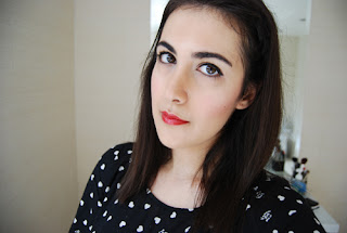 so yeah, that is my latest pride and joy. as for the make-up i wore today, well, please excuse my 'deer in headlights' look. recently my skin has been awful, so i've trying to divert people's attention to bold lips and big brows. perhaps too big.